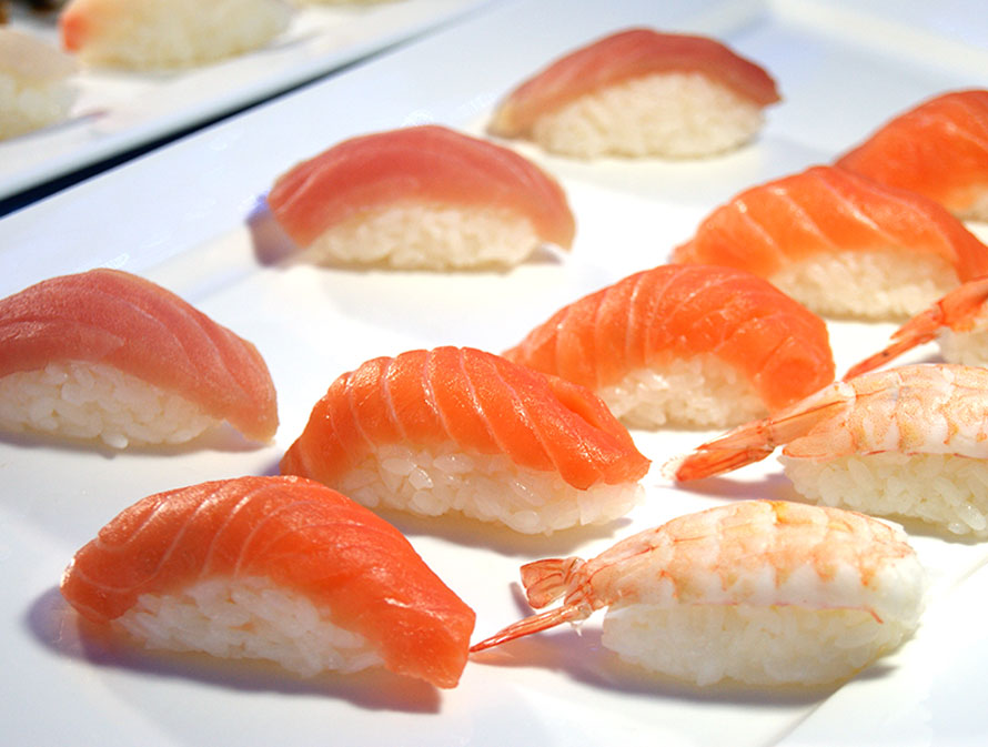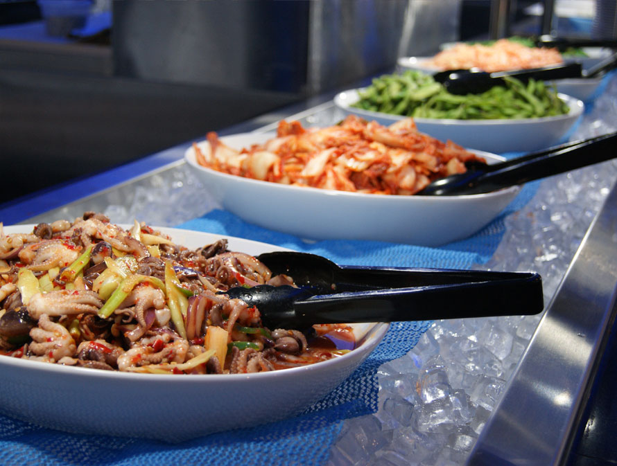 We offer Ribeye Steak, Salmon Fish, Butter Shrimp, Black Pepper Shrimp, Crabmeat, Cheese, General’s Chicken & Different Selections of Sushi. Large selection of salads, fruits, & desserts.